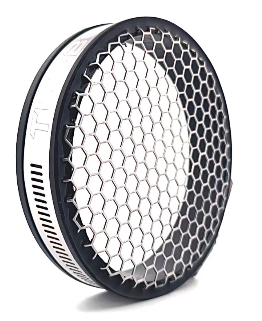 Developed for your High HP application. Perfect for diesels or any high boost applications. With 79% open area these things will let your turbo breath with an added peace of mind. These are the sweet spot in the middle for protection and air flow. Same brute strength as the Turbo-Guard Maxx but with smaller holes.